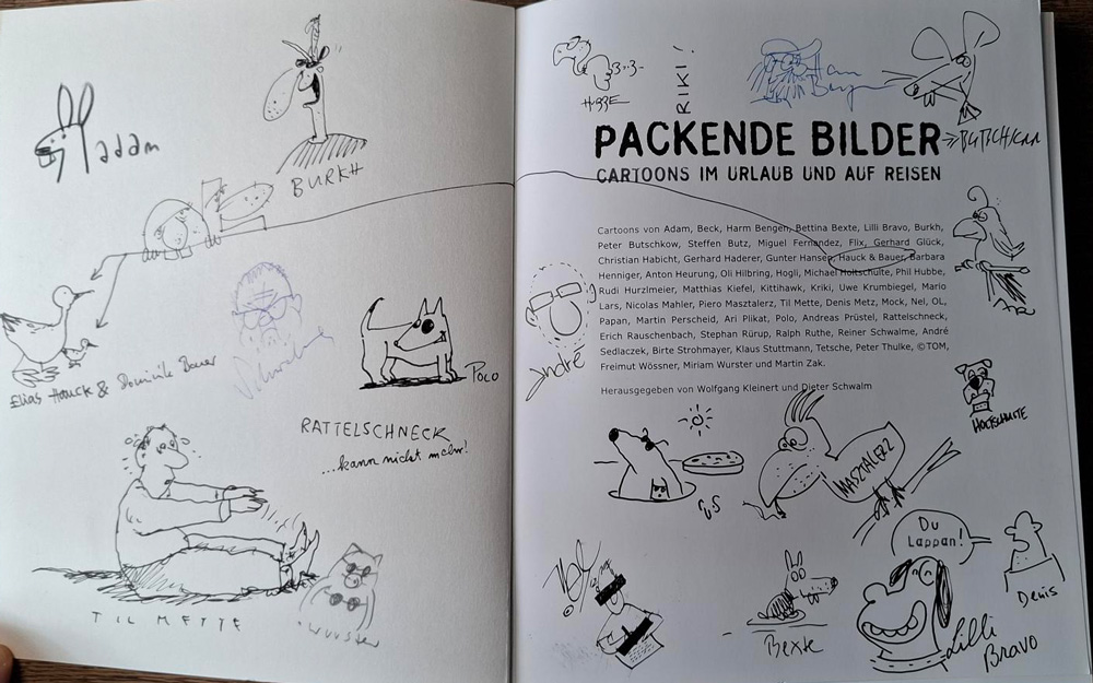 Das Cartoonairbuch von 15 Autor:innen signiert