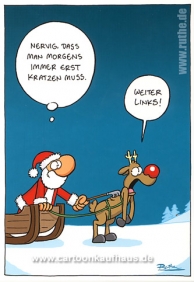 "Wenn du nicht gleich still bist, kommt morgen kein Weihnachtsmann!" Weihnachtskarte von Ralph Ruthe
